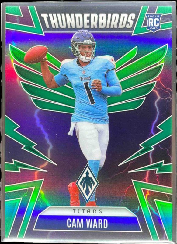 The Cam Ward 2025 Phoenix #49 Thunderbirds - Green /99 Rookie card is 1 of 183 Cam Ward's card variations in the 2025 Phoenix set being tracked by Sports Card Investor, including Base, Silver, Silver Hyper, Silver Lava, and Silver Lazer.
