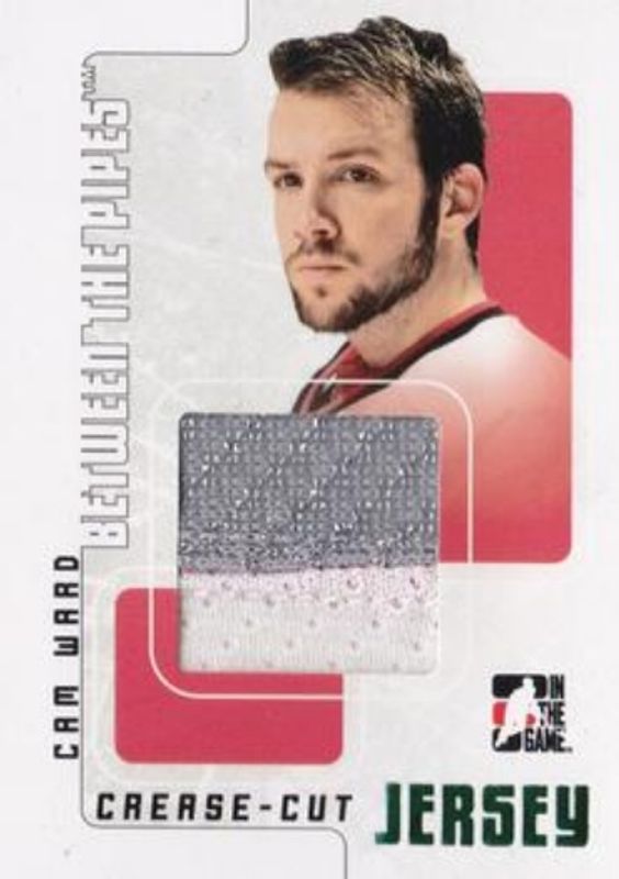The Cam Ward (NHL) 2007 In The Game Between The Pipes #CCJ-04 Jerseys card is 1 of 15 Cam Ward (NHL)'s card variations in the 2007 In The Game Between The Pipes set being tracked by Sports Card Investor, including Base, Autographs, Emblems, First Round Goalies Jerseys, and Flashbacks.