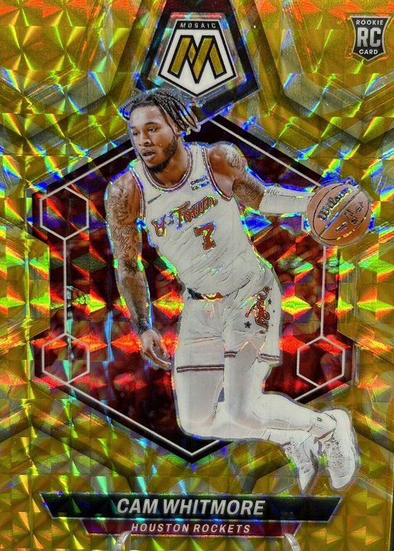 2023-24 Panini Mosaic #217 Cam Whitmore - Reactive Yellow Mosaic - Rockets (RC)