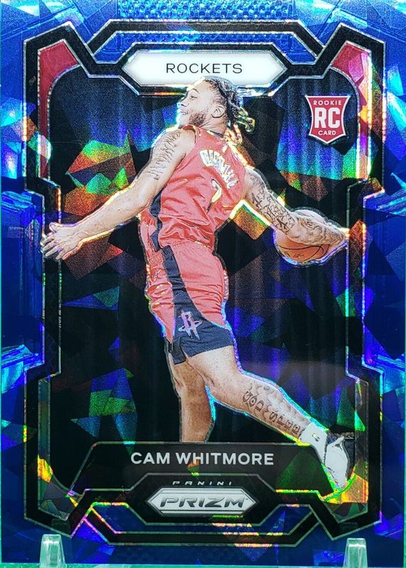 2023-24 Panini Prizm Cam Whitmore #129 Blue Cracked Ice Rookie RC Rockets /125