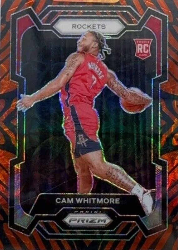 The Cam Whitmore 2023 Prizm #129 Choice Tiger Stripe /(SSP) Rookie card in Raw condition has not changed in price in the last 30 days and was last sold for $327.00 .