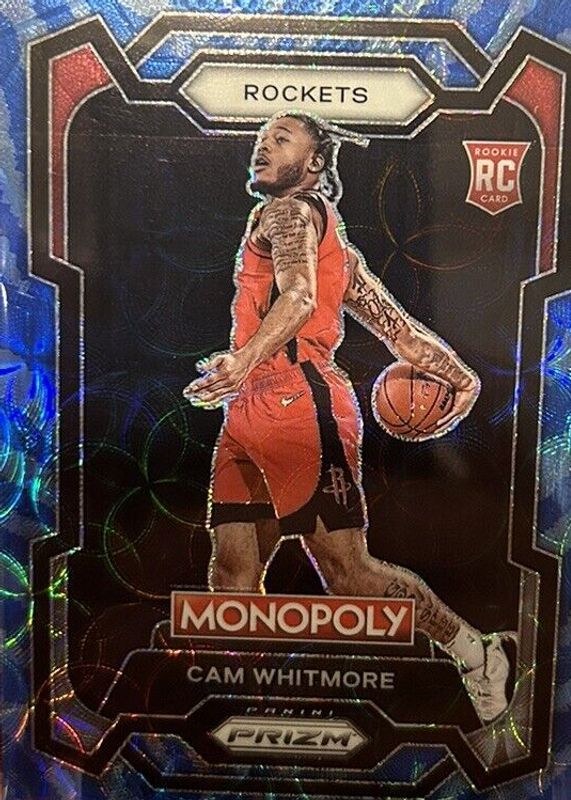 2023-24 Prizm Monopoly Blue Boardwalk Tiger Stripe Cam Whitmore RC - SSP Rookie