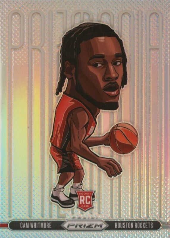 The Cam Whitmore 2023 Prizm #16 Prizmania /(SSP) Rookie card in Raw condition has not changed in price in the last 30 days and was last sold for $725.00 .