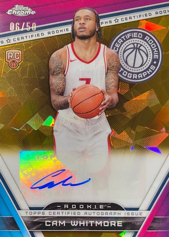 2023-24 Topps Chrome Sapphire Cam Whitmore Gold Certified Rookie Auto /50