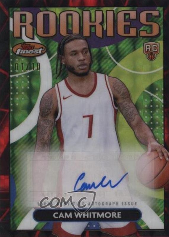 The Cam Whitmore 2023 Topps Finest #RFA-CW Rookie Finest Autographs - Red & Black Vapor Refractor /10 card in Raw condition has not changed in price in the last 30 days and was last sold for $46.54 .
