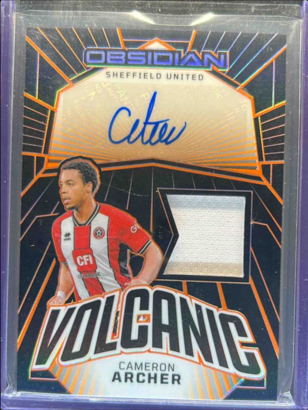 The Cameron Archer 2023 Obsidian #VM-CA Volcanic Material Signatures - Electric Etch Orange /75 card is 1 of 32 Cameron Archer's card variations in the 2023 Obsidian set being tracked by Sports Card Investor, including Base /120, Electric Etch Red Pulsar /49, Electric Etch Orange /40, Electric Etch Red Crystals /30, and Electric Etch Purple Flood /25.