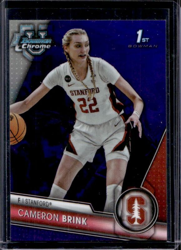 The Cameron Brink 2023 Bowman Chrome University #75 Purple Refractor /399 card is 1 of 43 Cameron Brink's card variations in the 2023 Bowman Chrome University set being tracked by Sports Card Investor, including Base, Pink Refractor, Purple Shimmer Refractor, Refractor, and X-Fractor.