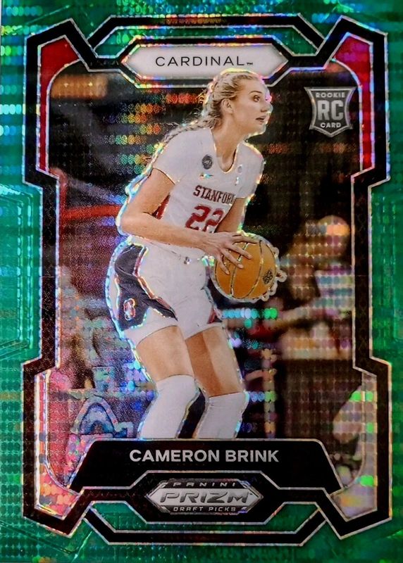 The Cameron Brink 2024 Prizm Draft Picks #89 Green Pulsar /25 Rookie card in Raw condition has not changed in price in the last 30 days and was last sold for $24.50 .