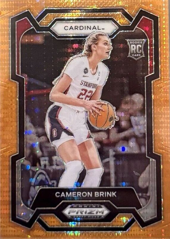The Cameron Brink 2024 Prizm Draft Picks #89 Orange Pulsar /49 Rookie card in Raw condition has not changed in price in the last 30 days and was last sold for $19.94 .