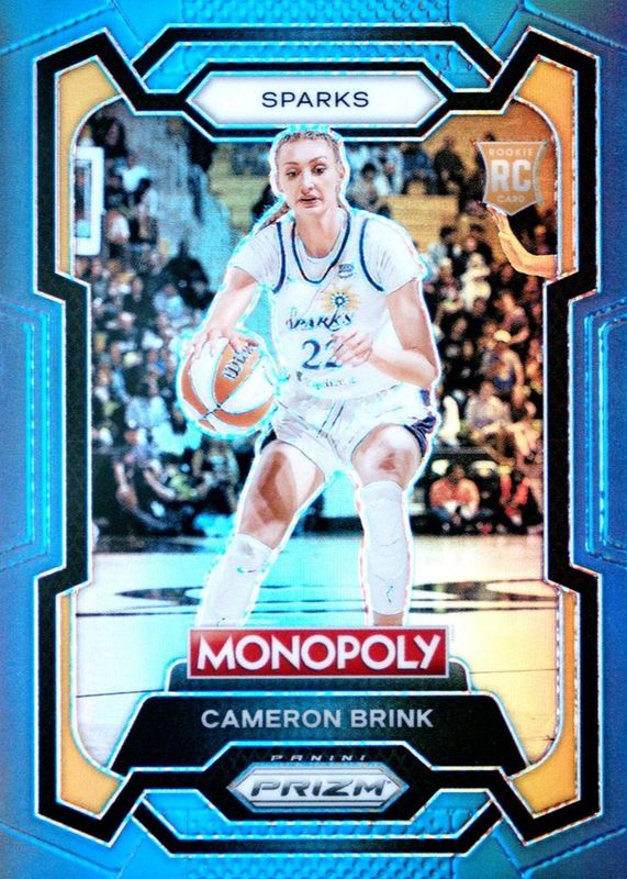 The Cameron Brink 2024 Prizm Monopoly WNBA #39 Boardwalk Blue /15 Rookie card in Raw condition has not changed in price in the last 30 days and was last sold for $119.99 .