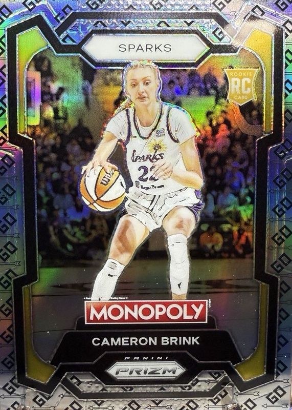 The Cameron Brink 2024 Prizm Monopoly WNBA #39 GO Space Rookie card in Raw condition has not changed in price in the last 30 days and was last sold for $11.00 .