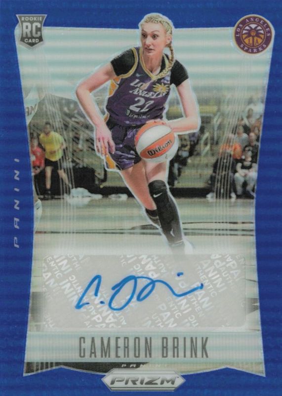 The Cameron Brink 2024 Prizm WNBA #TB-CB Throwback Signatures - Blue /75 Rookie card in Raw condition has not changed in price in the last 30 days and was last sold for $160.50 .
