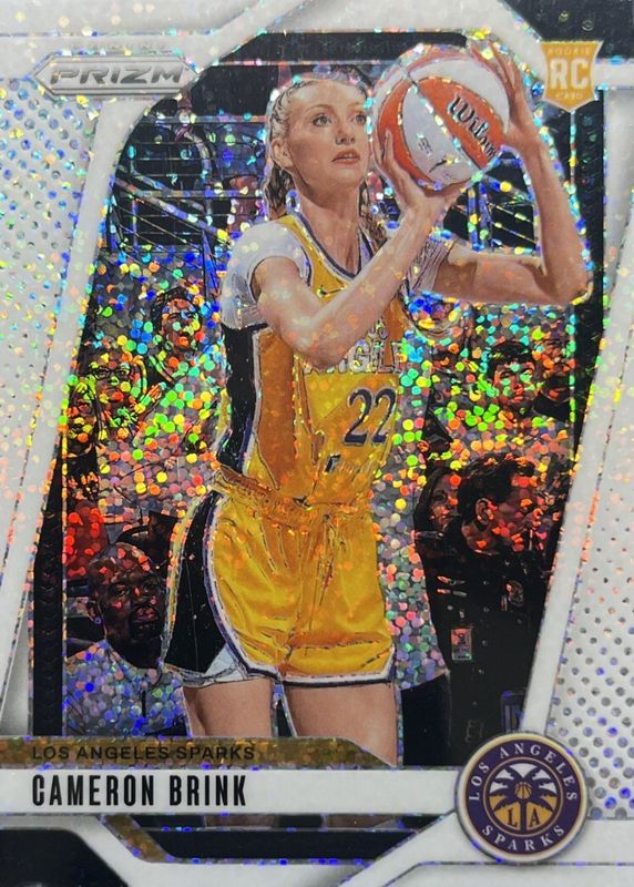The Cameron Brink 2024 Prizm WNBA #127 White Sparkle /(SSP) Rookie card in Raw condition has not changed in price in the last 30 days and was last sold for $489.00 .