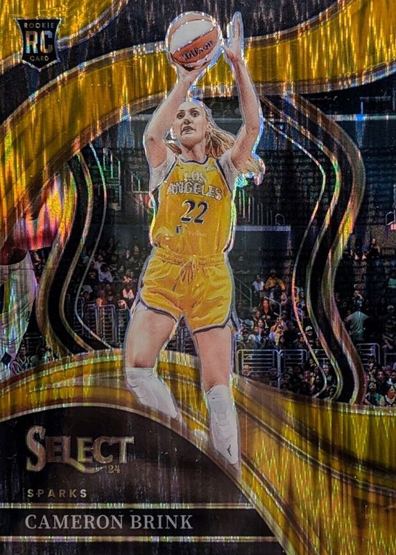 The Cameron Brink 2024 Select WNBA #228 Courtside Gold Flash /10 Rookie card in Raw condition has not changed in price in the last 30 days and was last sold for $338.89 .