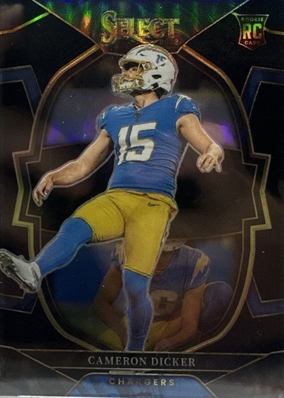 This card is 1 of 41 Cameron Dicker's card variations in the 2022 Select set being tracked by Sports Card Investor, including Concourse, Concourse Black & Green Die-Cut, Concourse Black & Red Die-Cut, Concourse Disco, and Concourse Green & Yellow Die-Cut.