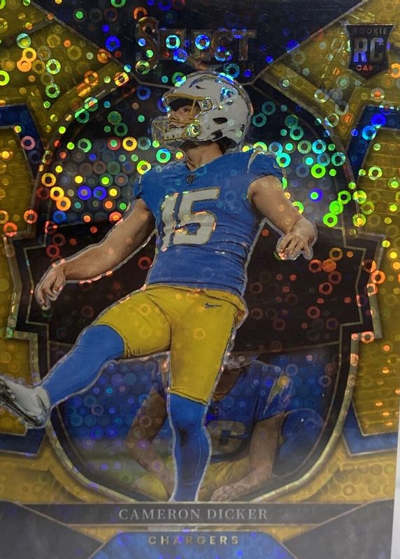 This card is 1 of 41 Cameron Dicker's card variations in the 2022 Select set being tracked by Sports Card Investor, including Concourse, Concourse Black & Green Die-Cut, Concourse Black & Red Die-Cut, Concourse Disco, and Concourse Green & Yellow Die-Cut.