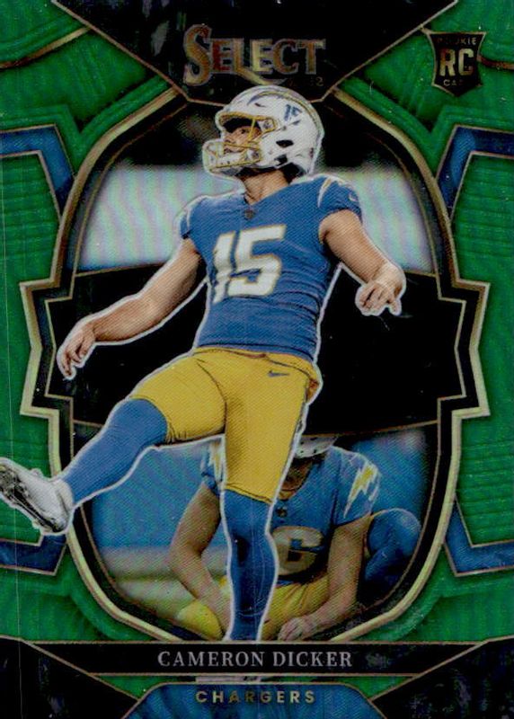 This card is 1 of 41 Cameron Dicker's card variations in the 2022 Select set being tracked by Sports Card Investor, including Concourse, Concourse Black & Green Die-Cut, Concourse Black & Red Die-Cut, Concourse Disco, and Concourse Green & Yellow Die-Cut.