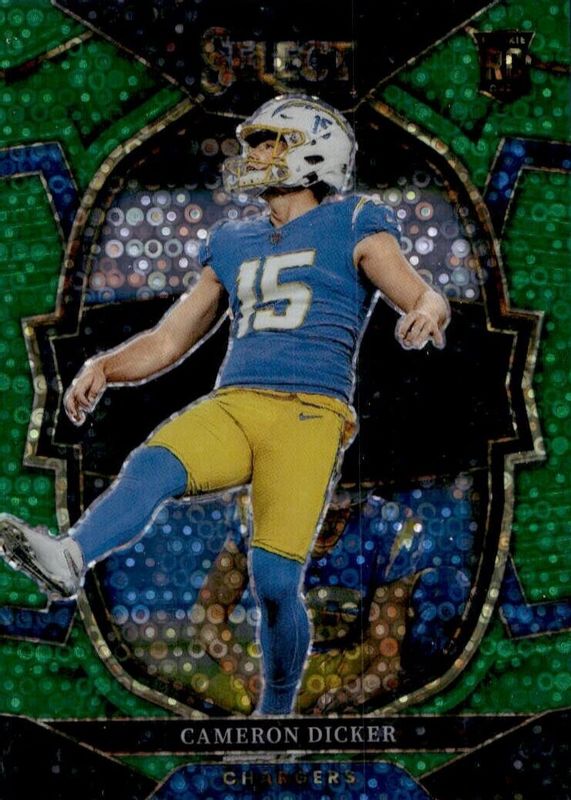 This card is 1 of 41 Cameron Dicker's card variations in the 2022 Select set being tracked by Sports Card Investor, including Concourse, Concourse Black & Green Die-Cut, Concourse Black & Red Die-Cut, Concourse Disco, and Concourse Green & Yellow Die-Cut.