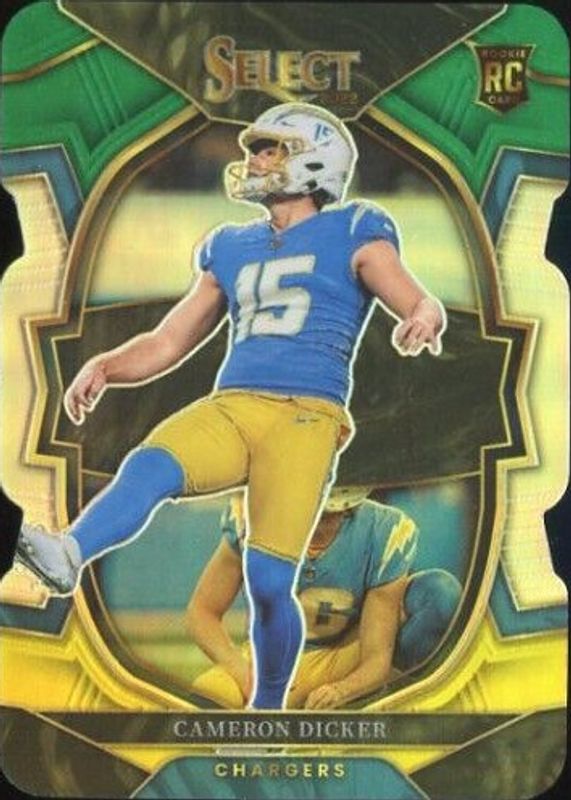 Cameron Dicker 2022 Panini Select #16 Rookie Chargers Green Yellow Die Cut RC