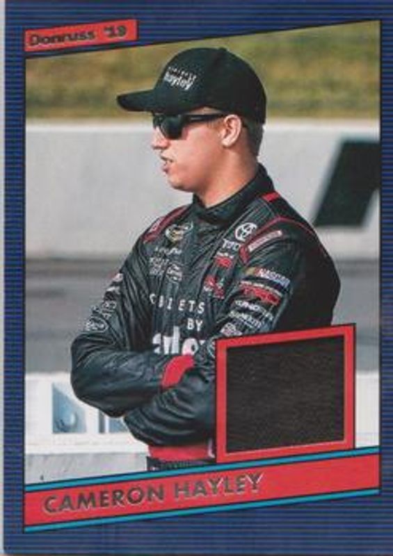 The Cameron Hayley 2019 Donruss NASCAR #86-CH 1986 Retro Relics card is 1 of 4 Cameron Hayley's card variations in the 2019 Donruss NASCAR set being tracked by Sports Card Investor, including 1986 Retro Relics - Red /225, 1986 Retro Relics Holo - Gold /25, and 1986 Retro Relics Holo - Black /10.