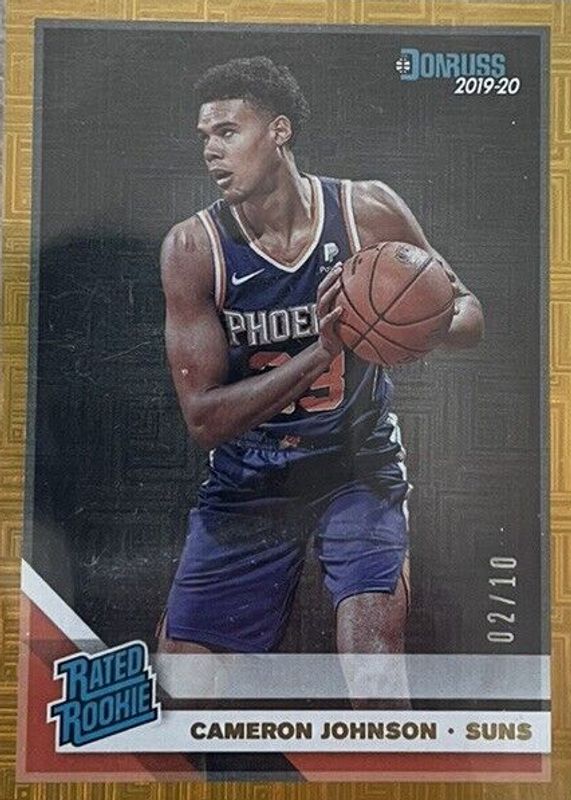 The Cameron Johnson 2019 Donruss #210 Infinite Gold /10 Rookie card in Raw condition has not changed in price in the last 30 days and was last sold for $26.00 .