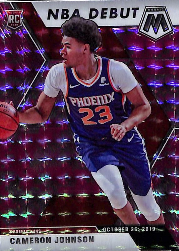 This card is 1 of 66 Cameron Johnson's card variations in the 2019 Mosaic set being tracked by Sports Card Investor, including Base, Fast Break, Green, Pink Camo, and Reactive Blue.