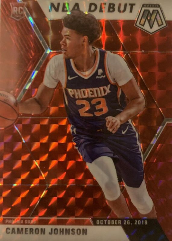 The Cameron Johnson 2019 Mosaic #265 NBA Debut - Red Rookie card in Raw condition has not changed in price in the last 30 days and was last sold for $1.85 .