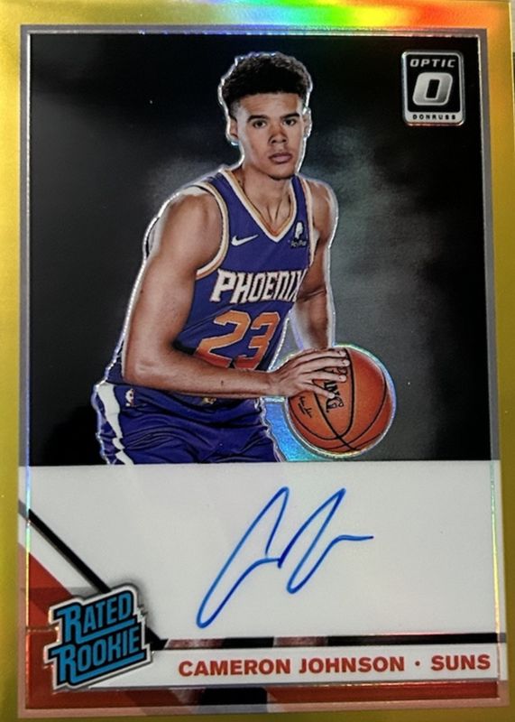 The Cameron Johnson 2019 Optic #200 Rated Rookie Signatures - Gold /10 card in Raw condition has not changed in price in the last 30 days and was last sold for $91.00 .