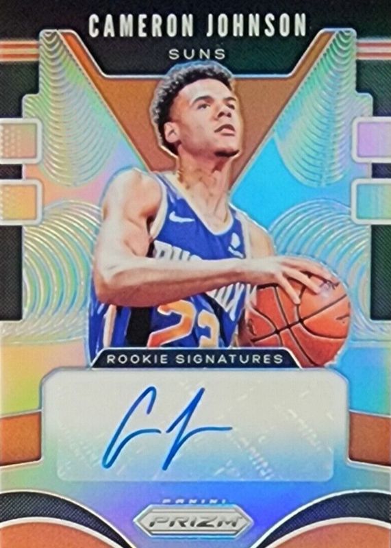 The Cameron Johnson 2019 Prizm #RS-CJN Rookie Signatures - Silver card in Raw condition has not changed in price in the last 30 days and was last sold for $13.50 .