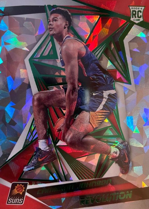 The Cameron Johnson 2019 Revolution #110 Chinese New Year Emerald /88 Rookie card in Raw condition has not changed in price in the last 30 days and was last sold for $0.99 .