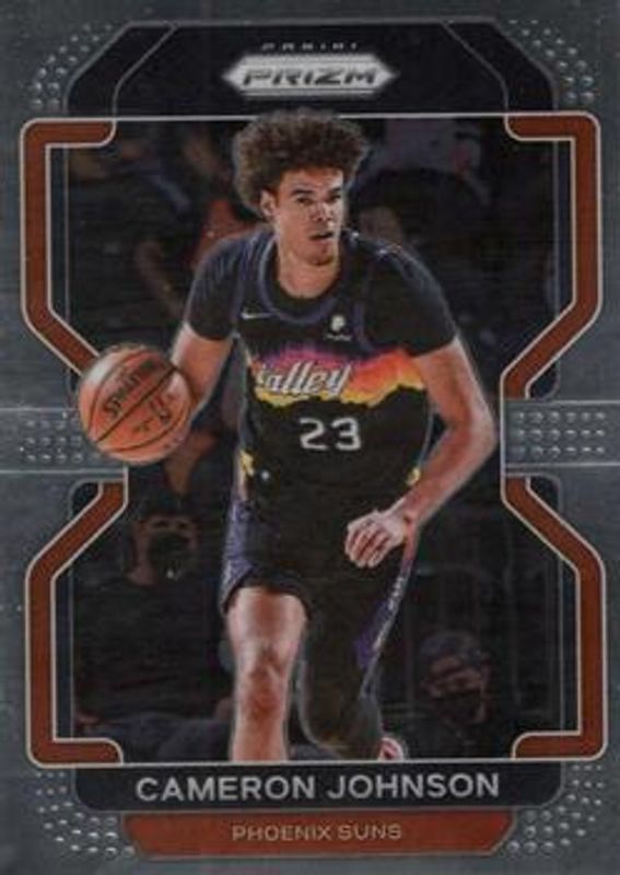 The Cameron Johnson 2021 Prizm #186 Base card is 1 of 60 Cameron Johnson's card variations in the 2021 Prizm set being tracked by Sports Card Investor, including Blue NBA 75th Anniversary, Blue Wave, Choice Blue Yellow Green, Factory Set Blue Hyper, and Factory Set Green Hyper.