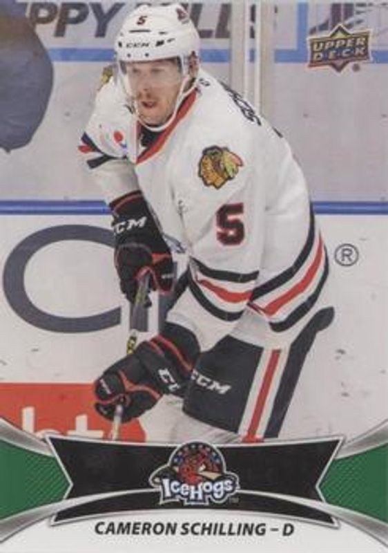 The Cameron Schilling 2016 Upper Deck AHL #45 Green card is 1 of 8 Cameron Schilling's card variations in the 2016 Upper Deck AHL set being tracked by Sports Card Investor, including Base, Red, Printing Plates Black /1, Printing Plates Cyan /1, and Printing Plates Magenta /1.