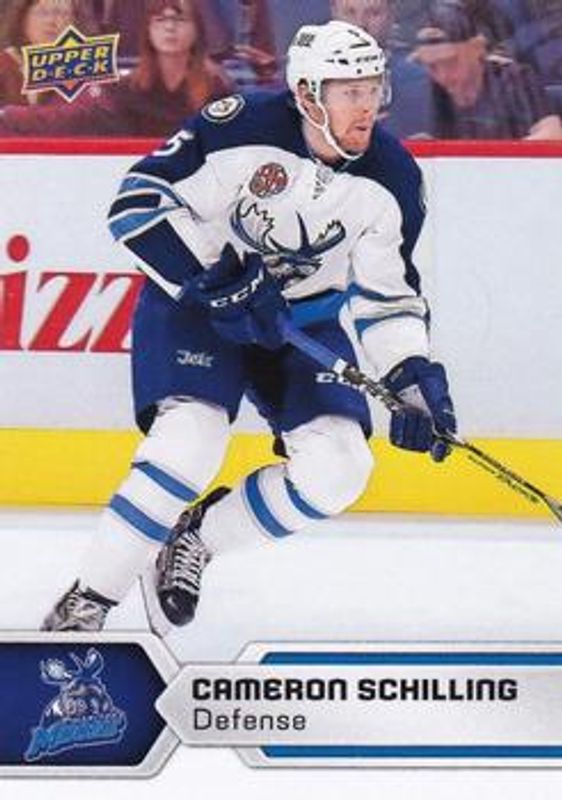 The Cameron Schilling 2017 Upper Deck AHL #1 Base card is 1 of 8 Cameron Schilling's card variations in the 2017 Upper Deck AHL set being tracked by Sports Card Investor, including Rainbow Foil, Silver Foil, Printing Plates Black /1, Printing Plates Cyan /1, and Printing Plates Magenta /1.