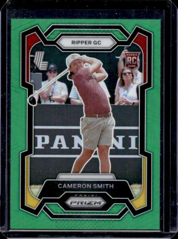 The Cameron Smith 2024 Prizm LIV #39 Green /18 card is 1 of 98 Cameron Smith's card variations in the 2024 Prizm LIV set being tracked by Sports Card Investor, including #39 Base, #79 Captains, #93 League Leaders, #79 Orange Tiger, and #39 Orange Tiger.