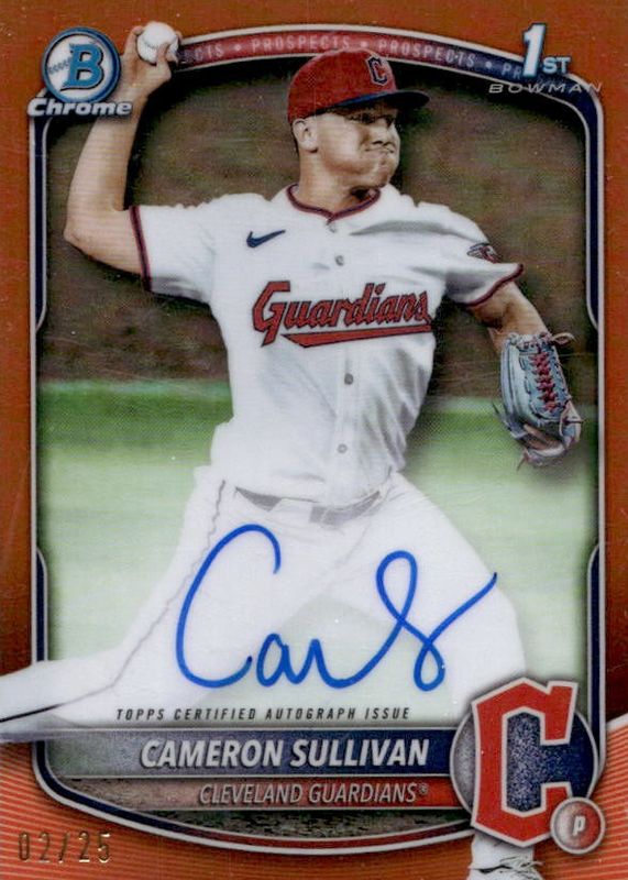 2025 Bowman Baseball 1st Chrome True Orange Auto /25 Cameron Sullivan Guardians