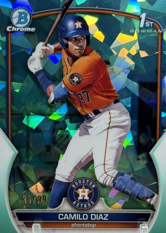 2023 Bowman Chrome Baseball Sapphire Camilo Diaz Aqua Refractor 1st #/99 Astros