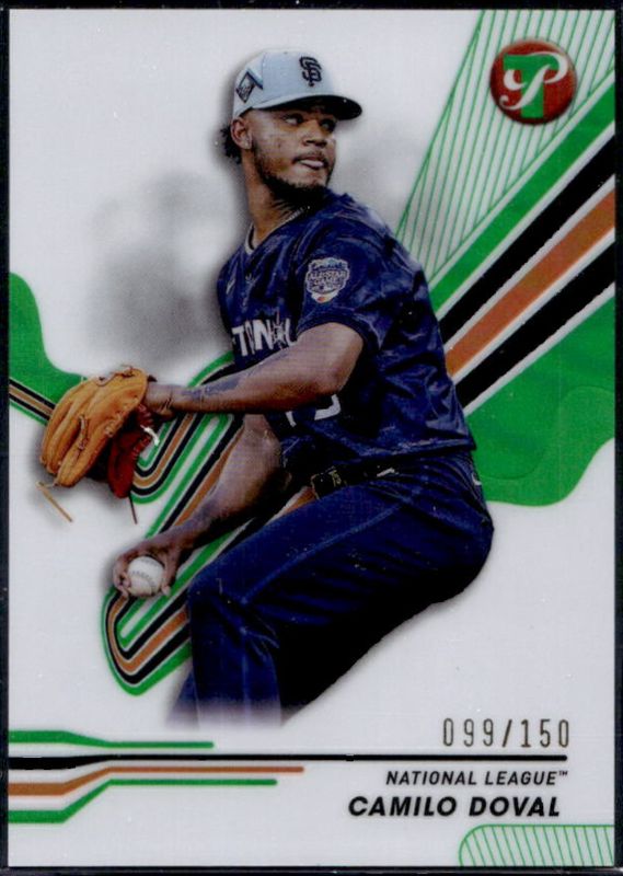 The Camilo Doval 2024 Topps Pristine #254 Green Refractor /150 card is 1 of 18 Camilo Doval's card variations in the 2024 Topps Pristine set being tracked by Sports Card Investor, including Base, Pristine Refractor, Refractor, Pristine Purple Refractor /99, and Purple Refractor /99.
