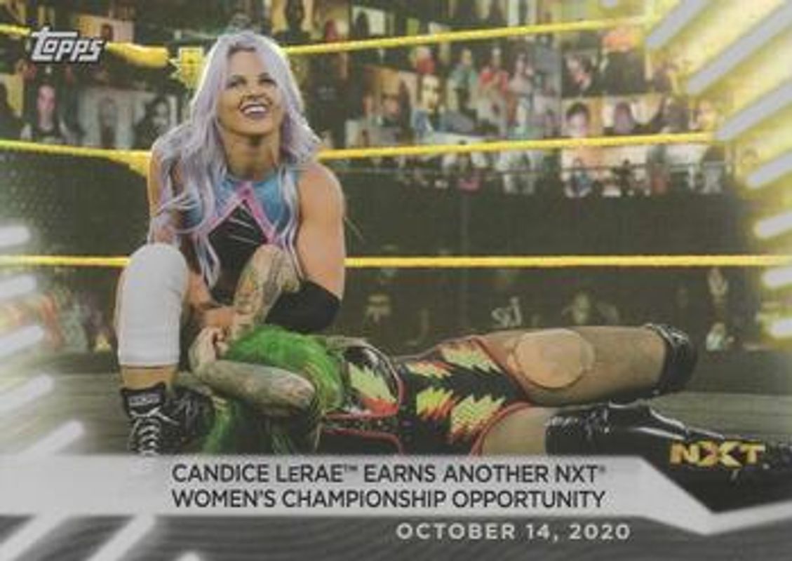 The Candice LeRae 2021 Topps WWE Women's Division #82 Rainbow Foil card is 1 of 66 Candice LeRae's card variations in the 2021 Topps WWE Women's Division set being tracked by Sports Card Investor, including #94 Base, #74 Base, #82 Base, #94 Rainbow Foil, and #74 Rainbow Foil.
