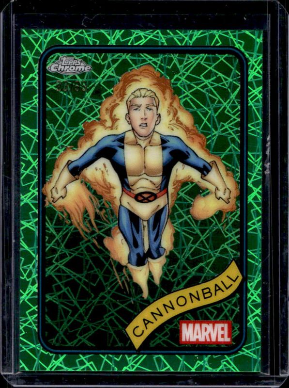 The Cannonball 2025 Topps Chrome #51 Hulk Green Lazer Refractor /99 card is 1 of 23 Cannonball's card variations in the 2025 Topps Chrome set being tracked by Sports Card Investor, including Base, Refractor, Yellow Lava Refractor, Spider Web Refractor /399, and Blue Refractor /299.