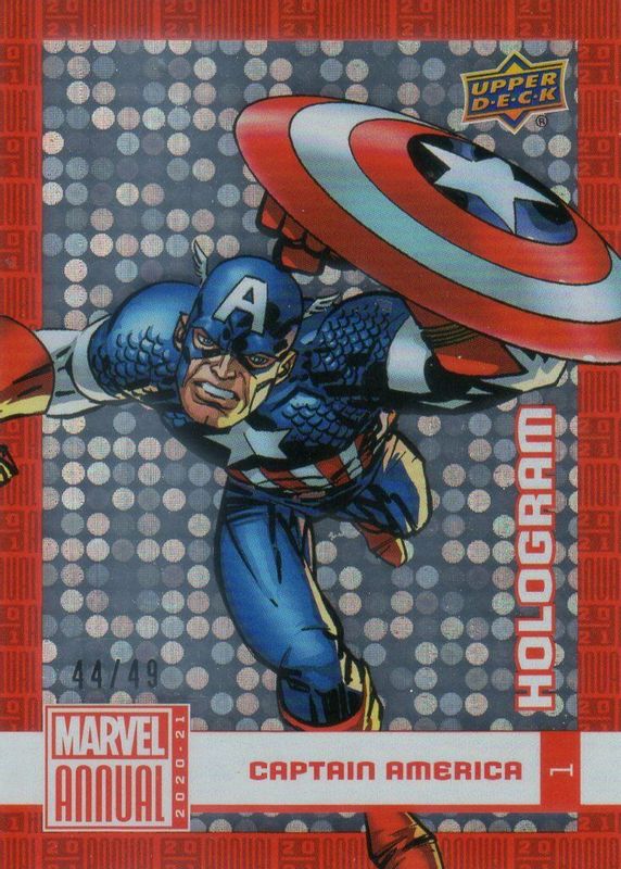 The Captain America 2020 Annual #1 Foilboard Hologram /49 card in Raw condition has not changed in price in the last 30 days and was last sold for $61.00 .