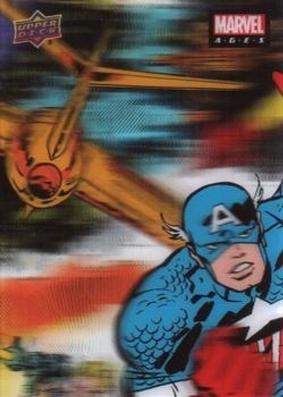 The Captain America 2020 Upper Deck Marvel Ages #3D-9 3 D Lenticular Puzzles card is 1 of 28 Captain America's card variations in the 2020 Upper Deck Marvel Ages set being tracked by Sports Card Investor, including #298 Base, #298 High Series Foil Board, #3D-10 3 D Lenticular Puzzles, #3D-12 3 D Lenticular Puzzles, and #3D-11 3 D Lenticular Puzzles.