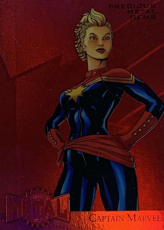 The Captain Marvel 2015 Fleer Retro #7 Precious Metal Gems Red /100 card in Raw condition has not changed in price in the last 30 days and was last sold for $120.00 .