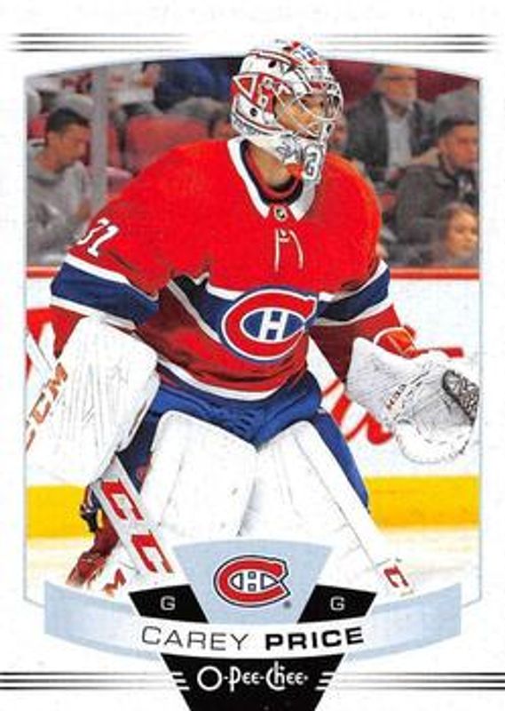 The Carey Price 2019 O-Pee-Chee #251 Base card is 1 of 26 Carey Price's card variations in the 2019 O-Pee-Chee set being tracked by Sports Card Investor, including #251b Base, #600 Base, #600 Blue Border, #251 Blue Border, and #600 Gold Border.
