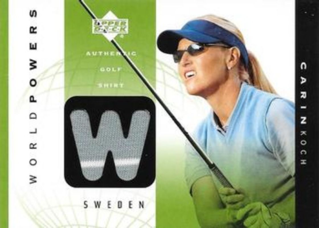 The Carin Koch 2003 Upper Deck #WP1-CK World Powers Single Shirts card is 1 of 4 Carin Koch's card variations in the 2003 Upper Deck set being tracked by Sports Card Investor, including Base, Fairway Fabrics, and World Powers Double Shirts.