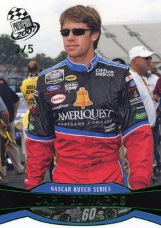 The Carl Edwards 2007 Press Pass #EB35 eBay Previews /5 card is 1 of 32 Carl Edwards' card variations in the 2007 Press Pass set being tracked by Sports Card Investor, including #13 Base, #88 Base, #82 Base, #35 Base, and #B35 Blue.