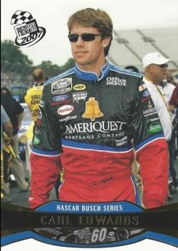 The Carl Edwards 2007 Press Pass #G35 Gold card is 1 of 32 Carl Edwards' card variations in the 2007 Press Pass set being tracked by Sports Card Investor, including #13 Base, #88 Base, #82 Base, #35 Base, and #B35 Blue.