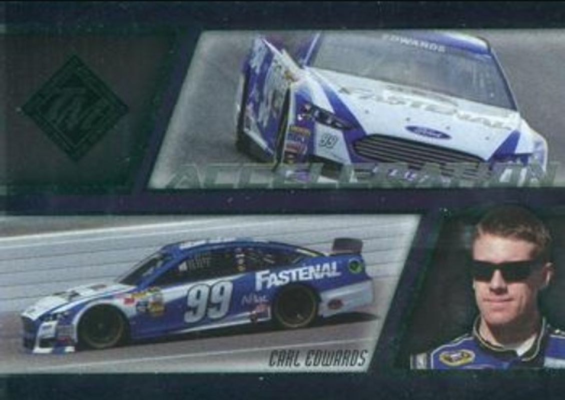 The Carl Edwards 2014 Press Pass Total Memorabilia #AC-3 Acceleration card is 1 of 15 Carl Edwards' card variations in the 2014 Press Pass Total Memorabilia set being tracked by Sports Card Investor, including Base, Red, Gold /175, Black & White /99, and Total Memorabilia Silver Single /275.
