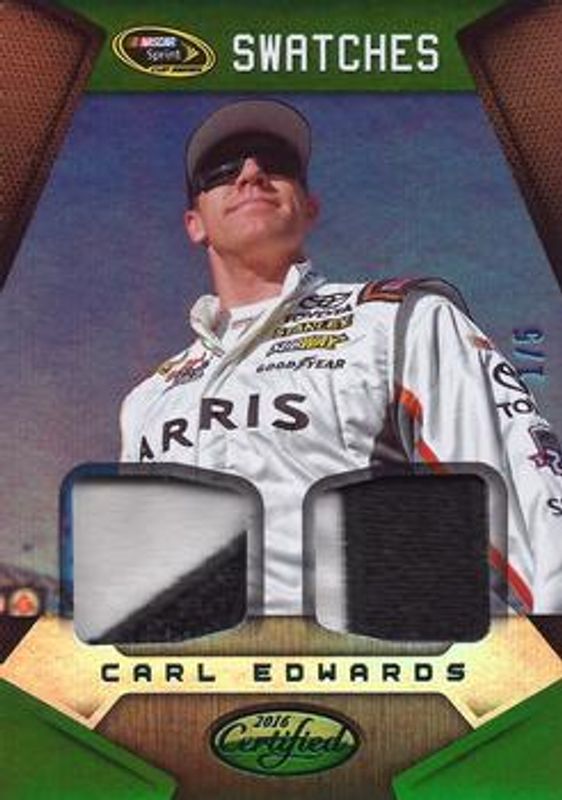 Carl Edwards 2016 Certified NASCAR #SCS-CE2 Sprint Cup Swatches Dual - Mirror Green /5 RAW Price Guide