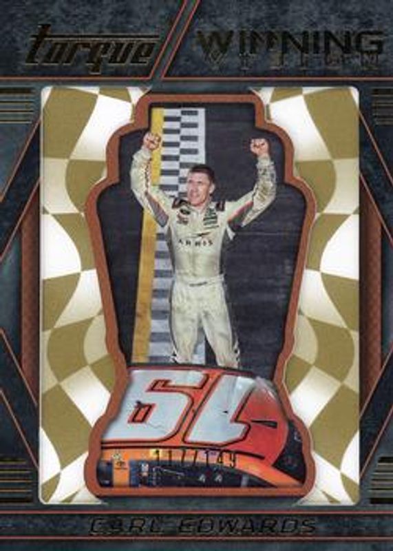 The Carl Edwards 2016 Torque NASCAR #WV5 Winning Vision Gold /149 card is 1 of 104 Carl Edwards' card variations in the 2016 Torque NASCAR set being tracked by Sports Card Investor, including #82 Base, #5 Base, #82 Gold, #5 Gold, and #82 Blue /125.