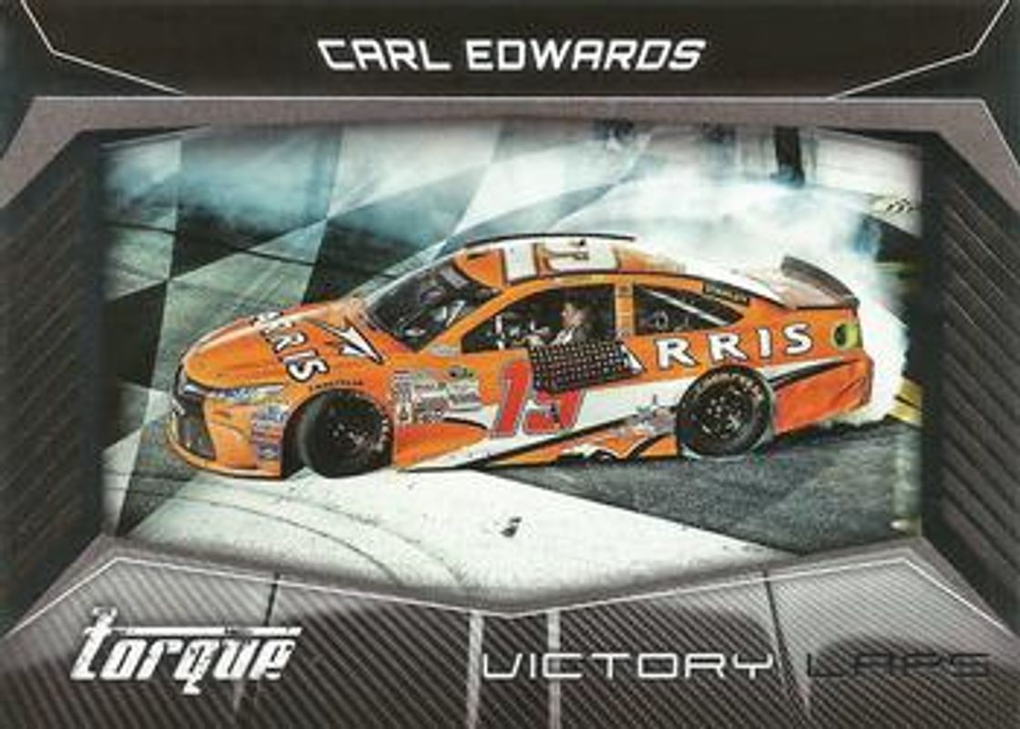 The Carl Edwards 2017 Torque NASCAR #VL14 Victory Laps card is 1 of 58 Carl Edwards' card variations in the 2017 Torque NASCAR set being tracked by Sports Card Investor, including Base, Gold, Blue /150, Red /100, and Artist Proof /75.